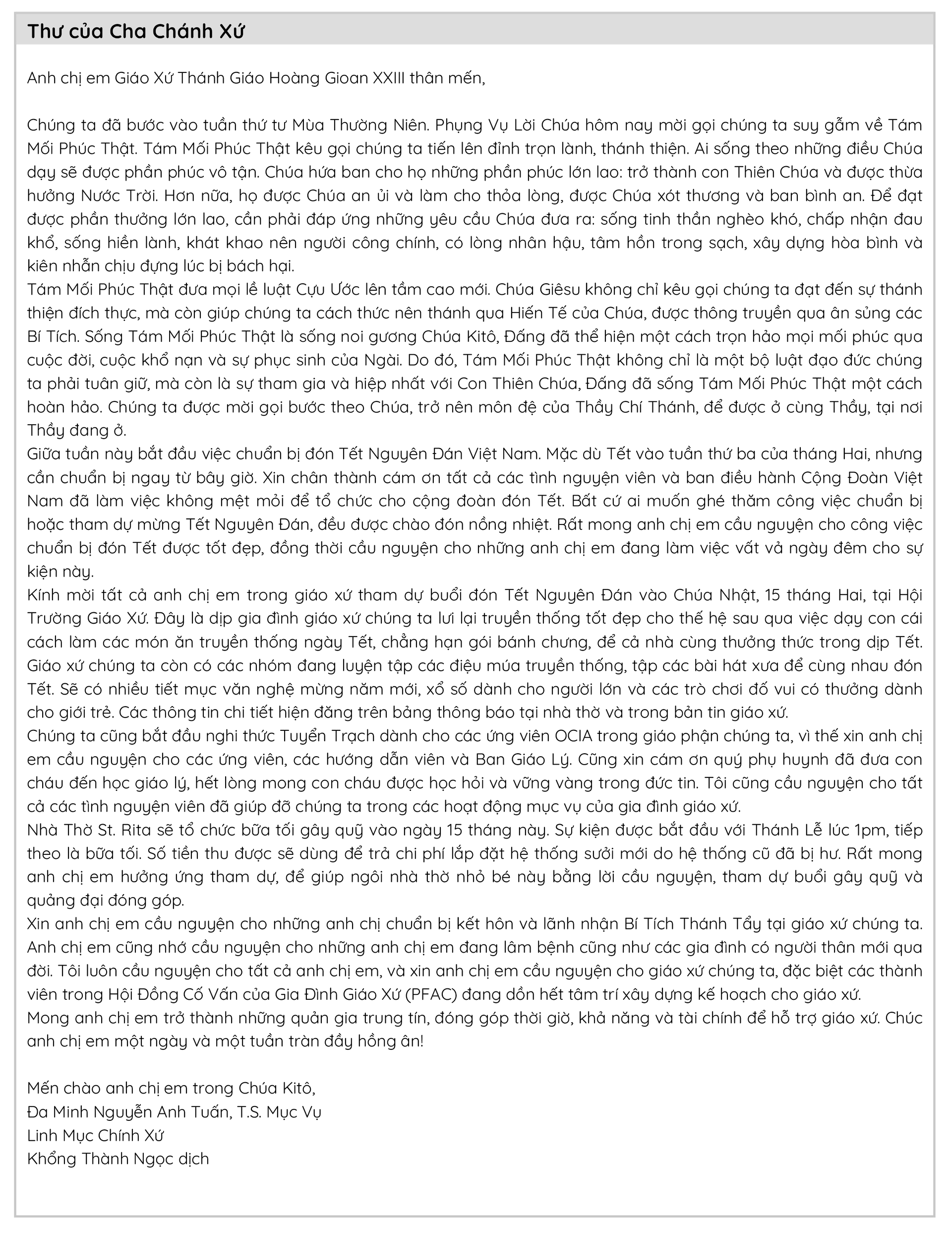 Letter to Pope Saint John XXIII Parish Family (PF38)