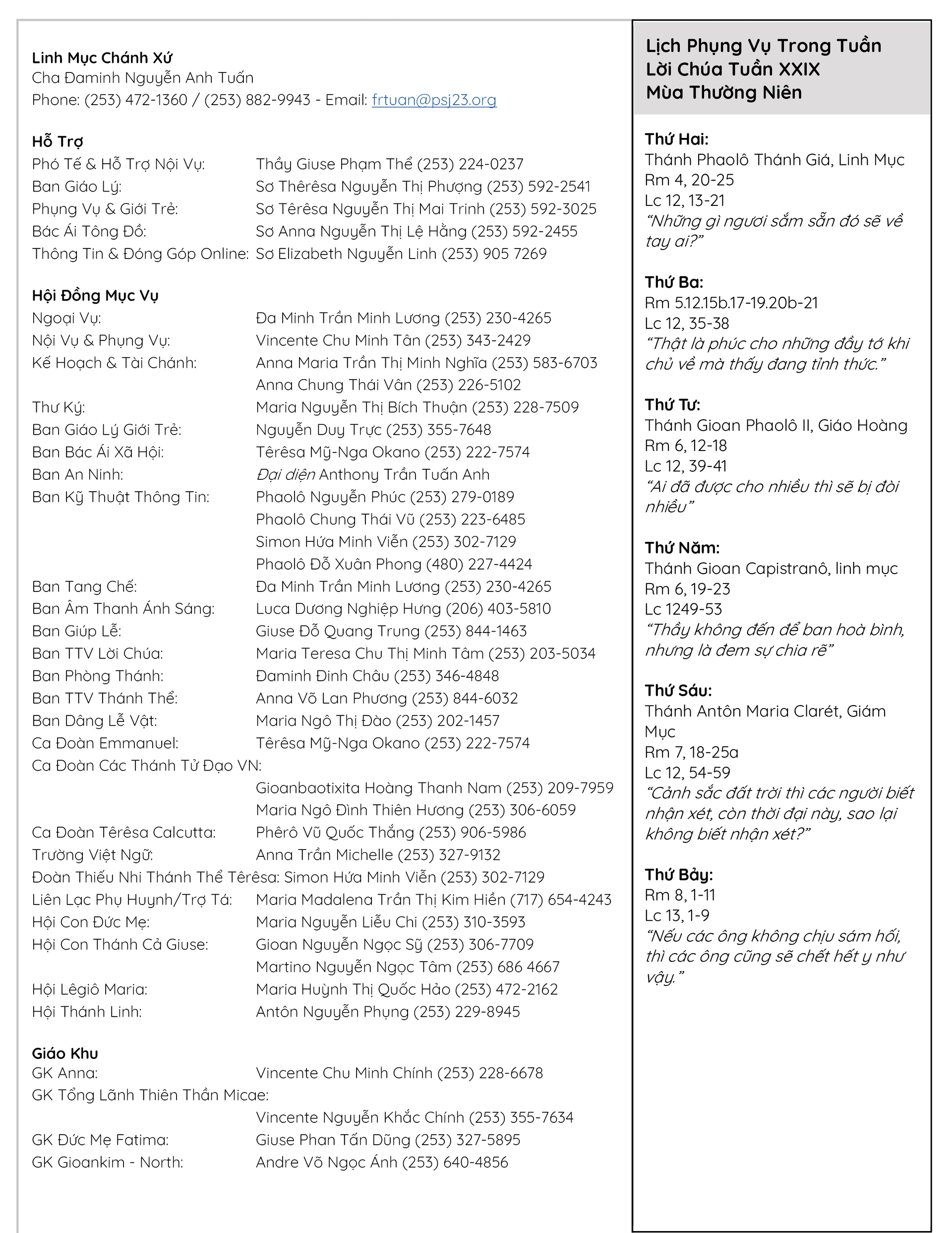 Parish Bulletin | Oct. 19, 2025